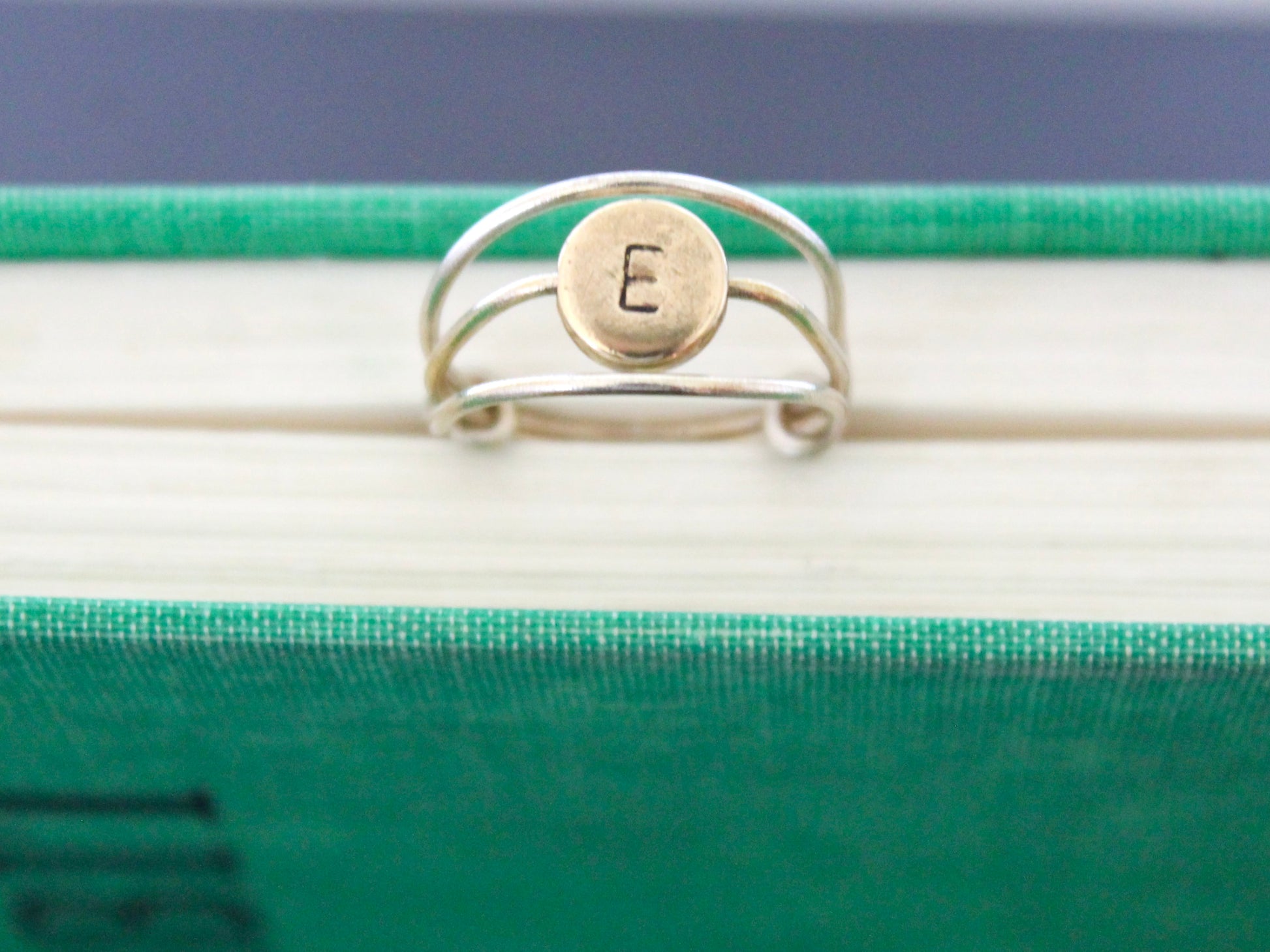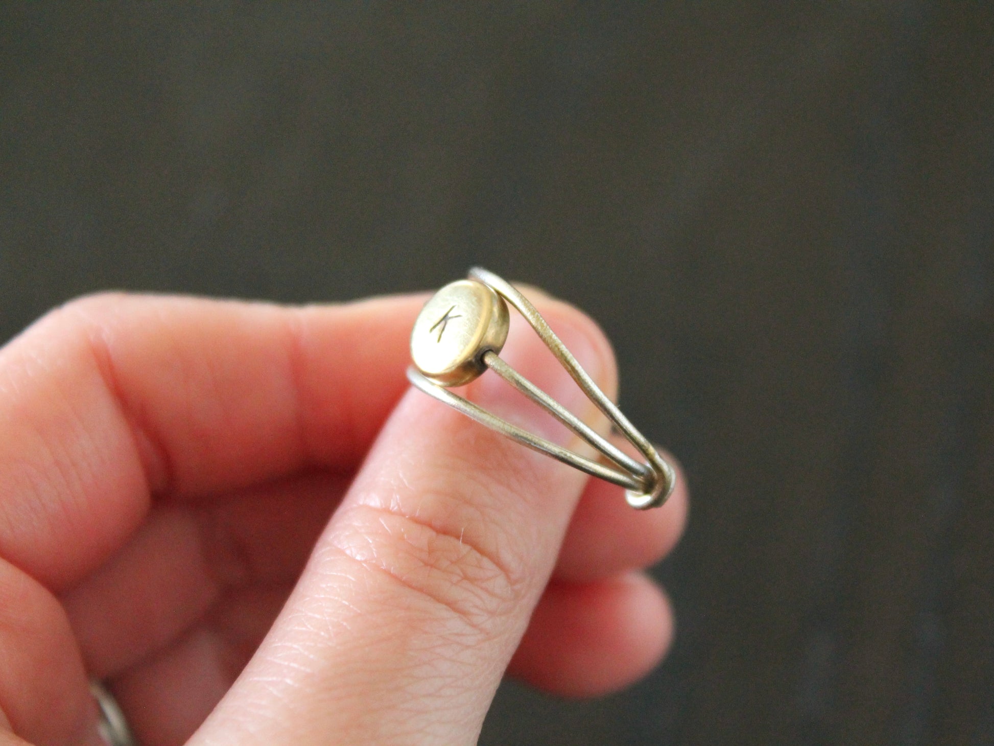 These initial rings are unique, made with bent wire and hand-stamped brass letter beads.